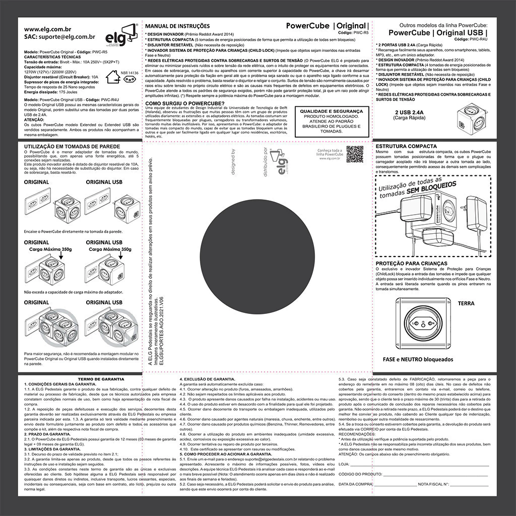 ADAPTADOR Multiplicador 5 tomadas Bivolt PowerCube ORIGINAL PWC-R5 - ELG