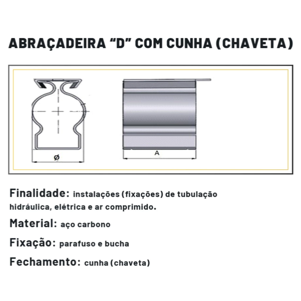 AIEDEM - ABRAÇADEIRA D COM CUNHA ZB 1/2" CODIGO ABDC001- AIEDEM