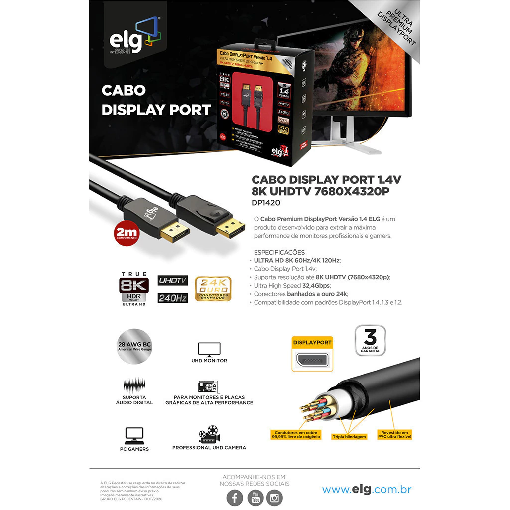 CABO Display Port PREMIUM 8K 2 metros DP1420 - ELG