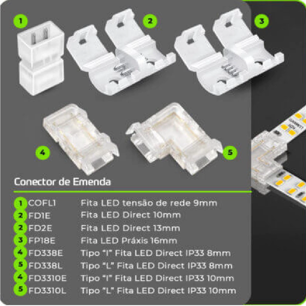 CONECTOR L EMENDA 127V/220V FITA LED DIRECT IP33 8MM COD FD338L - LUMANTI