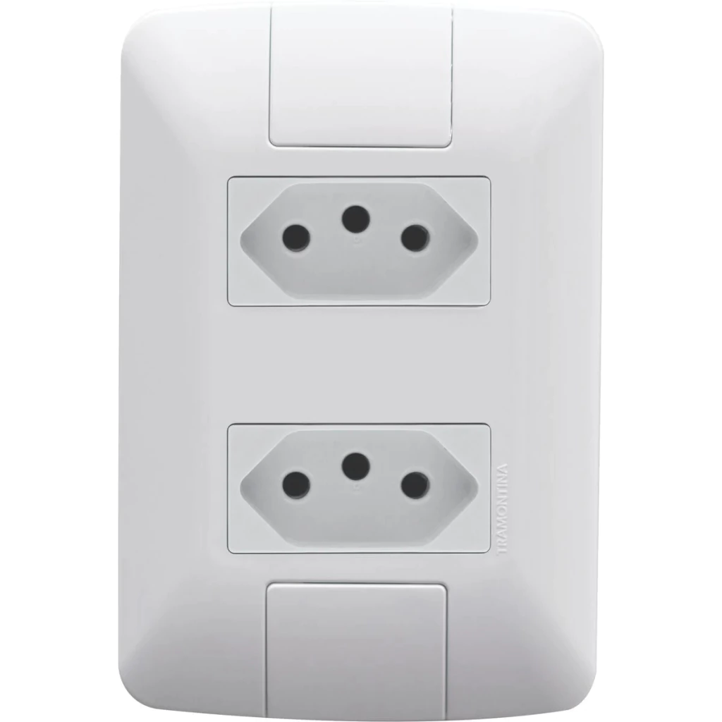 Com o Conjunto 4x2 com 2 Tomadas 2P+T Tramontina Aria 10 A 250 V Branco você terá mais praticidade na hora de ligar mais de um equipamento elétrico ou eletrônico ao mesmo tempo. Produzido em termoplástico com acabamento brilho na cor branca, ele possui sistema modular com o suporte incorporado e furo oblongo que facilita a fixação e a regulagem da placa à parede, deixando-a reta; além disso, sua instalação não fica aparente, o que deixa seu cômodo ainda mais bonito. Um item ideal para sua casa, que acompanha suporte e parafusos para a instalação!