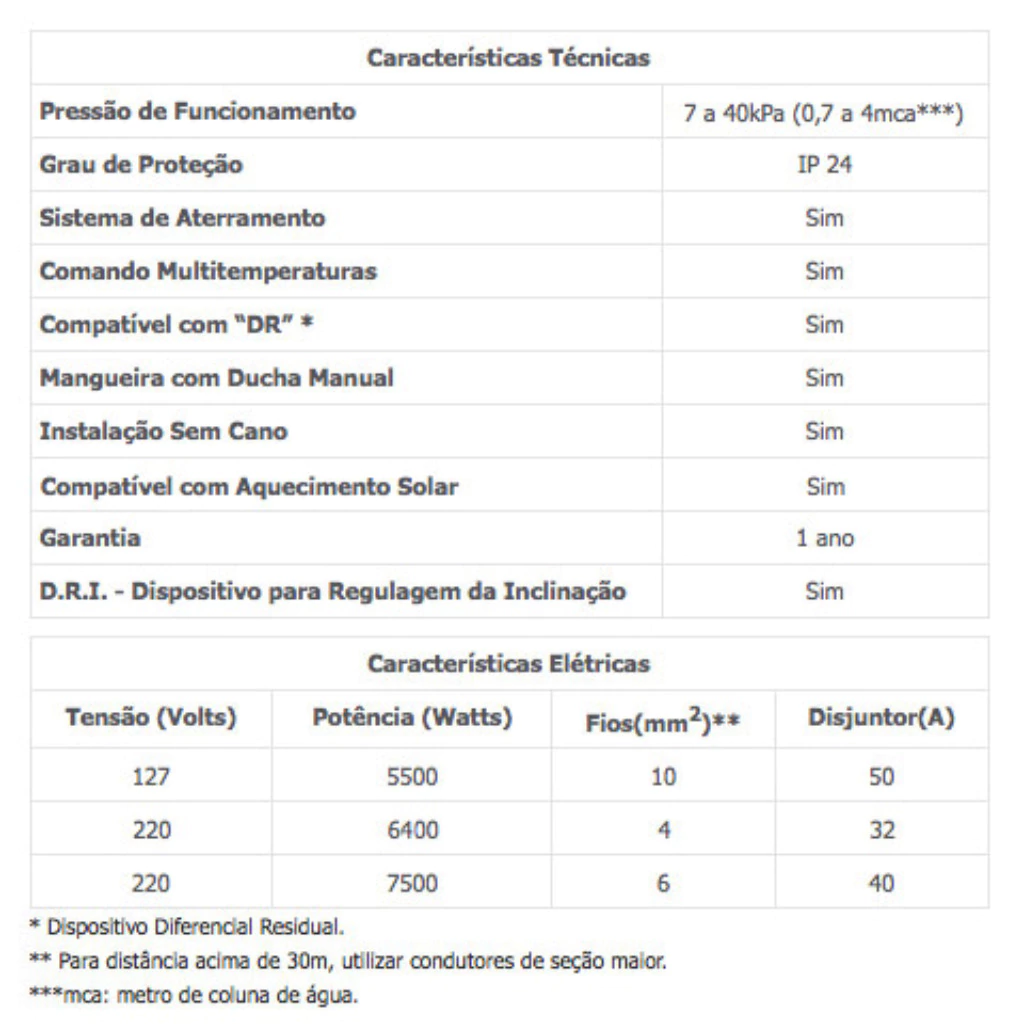 Este produto está de acordo com a norma de padronização para chuveiros elétricos NBR-12483.