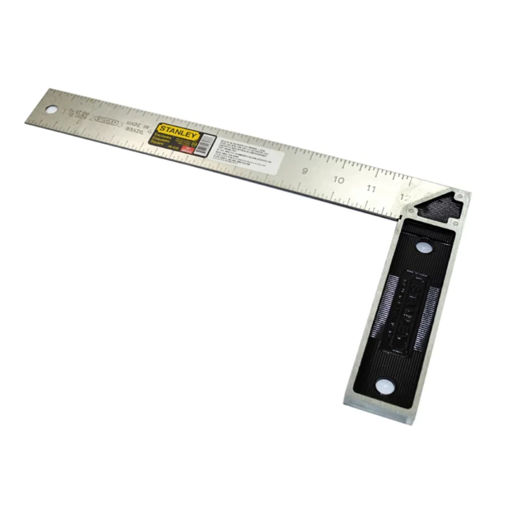 Esquadro profissional 12" 305mm que traz em sua composição corpo em aço / cabo em metal