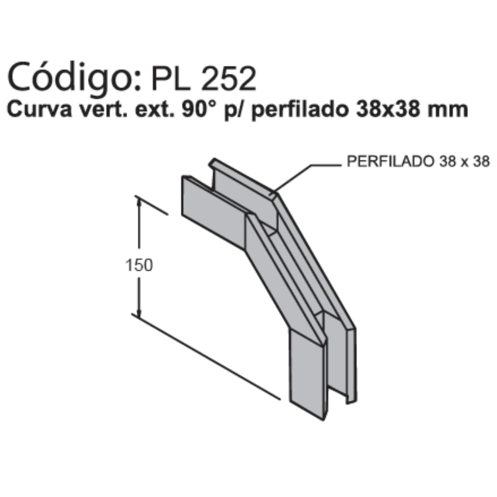 CURVA VERTICAL EXTERNA 90º PERFILADO 38X38MM E-PZ CODIGO 2523838PZ - PERFIL LIDER