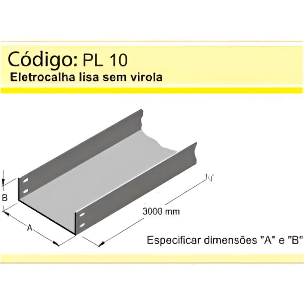 ELETROCALHA LISA SEM VIROLA G-PZ 200X100X3000MM #24 - PERFIL LIDERAplicação: eletrocalhasBitola: 200X100X3000MMCódigo: PL 10Fabricante: Perfil Líder