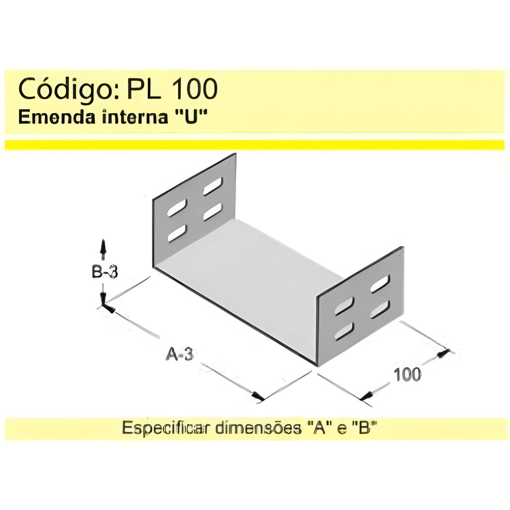 EMENDA INTERNA U G-PZ 200X100MM CODIGO 1000200100GPZ - PERFIL LIDER