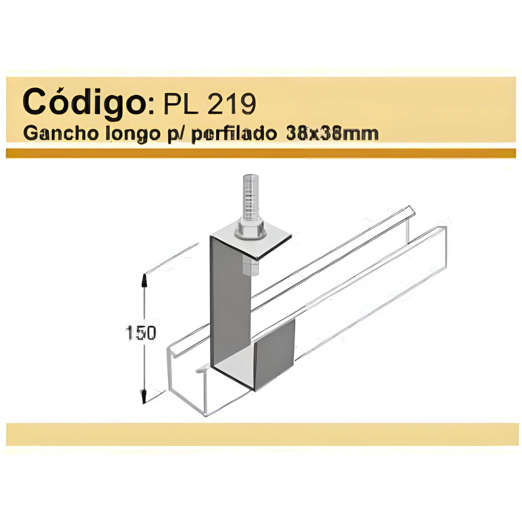 GANCHO LONGO PARA PERFILADO 38X38 B-PZ - PERFIL LIDERAplicação: perfiladoBitola: 38X38mmCódigo: PL 219Fabricante: Perfil Líder