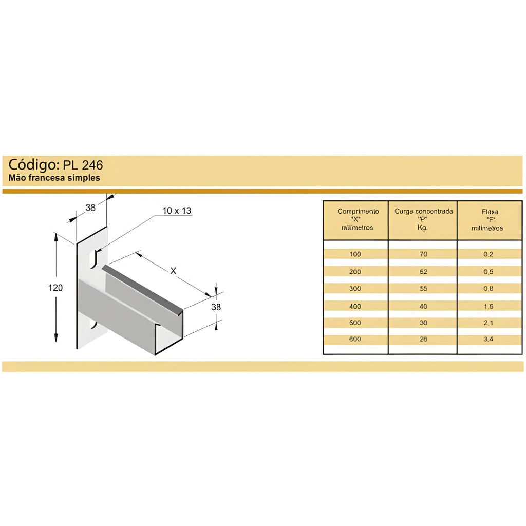 MAO FRANCESA SIMPLES 200MM E-PZ - PERFIL LIDERAplicação: perfiladoBitola: 200MMCódigo: PL 246Fabricante: Perfil LíderCódigo EAN: 7899833502149