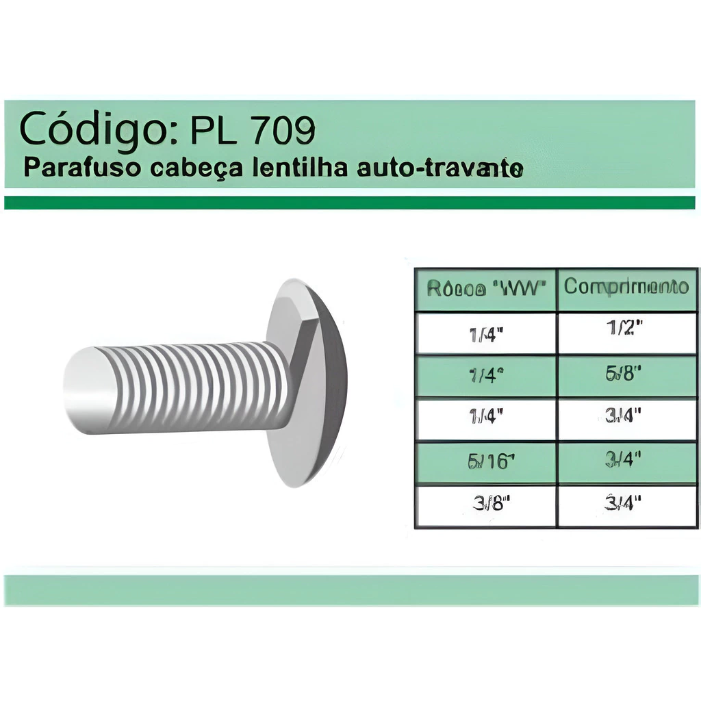 PERFIL LIDER - PARAFUSO CABEÇA LENTILHA AUTO-TRAV. 3/8X3/4 CODIGO PL7090710GE - GE- PERFIL LIDER