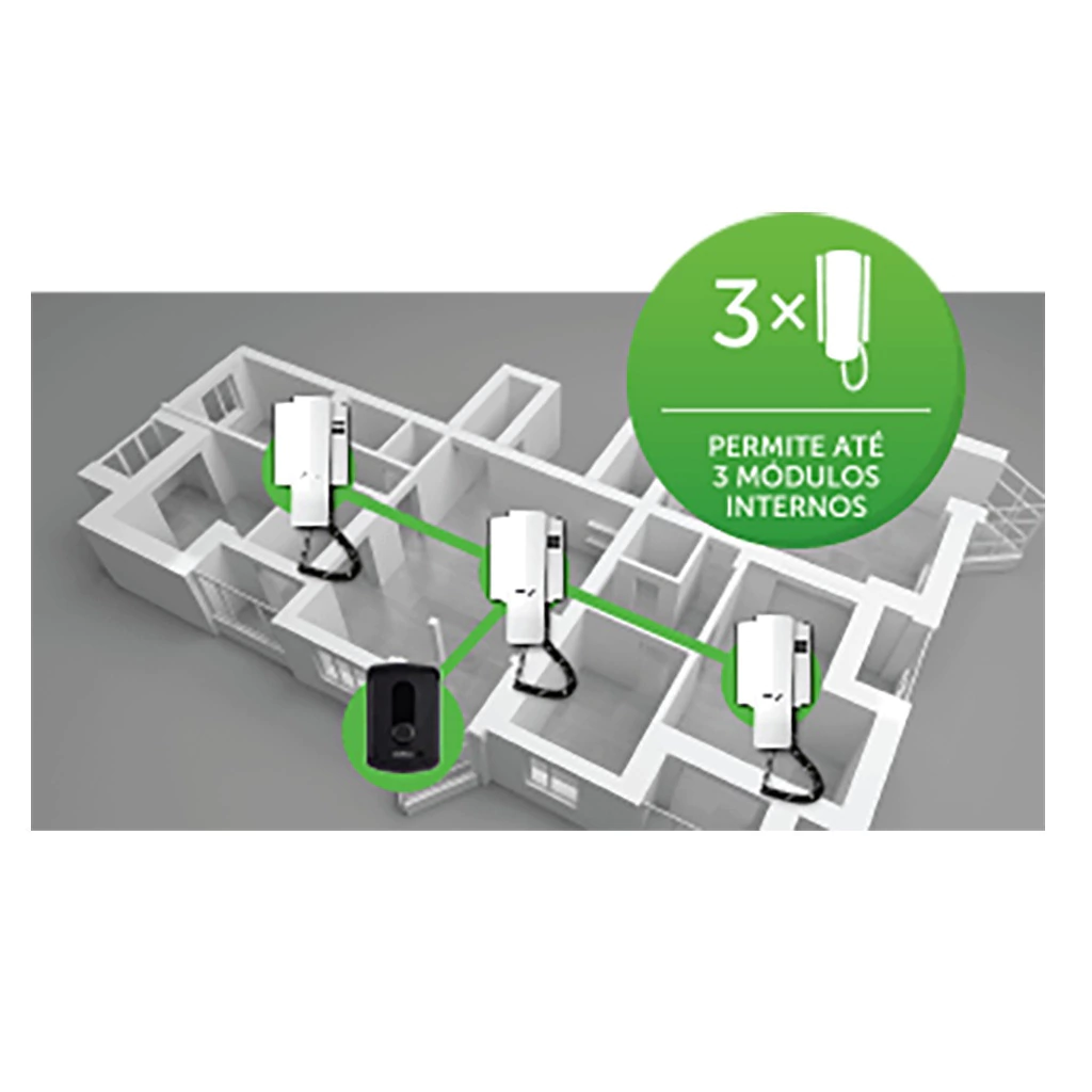 Compatível com até três módulos internos Comunicação em diversos ambientes. Atenda o visitante da sala, cozinha ou quarto com módulos extras de áudio.