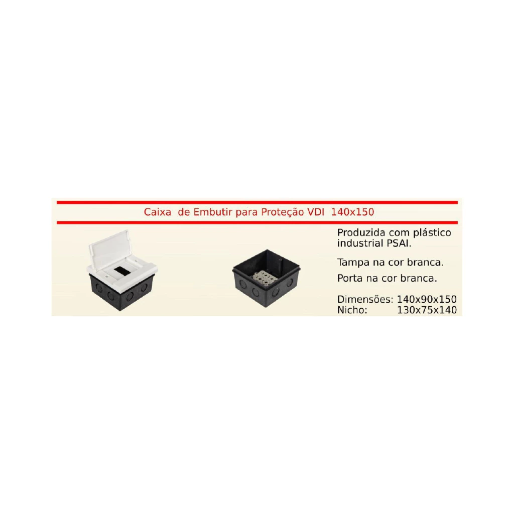 QUADRO VDI 140X150X90 TAMPA BRANCA / PORTA BRANCA EMBUTIR CODIGO 0304034 - BIKIDescrição:Caixa de Embutir para Proteção VDIProduzida com plástico PSAI.Tampa na cor Branca com porta na cor BrancaDimensão: 140X150X90Nicho: 130X140x75FABRICANTE BIKICódigo EAN (GTIN) 7897223000688