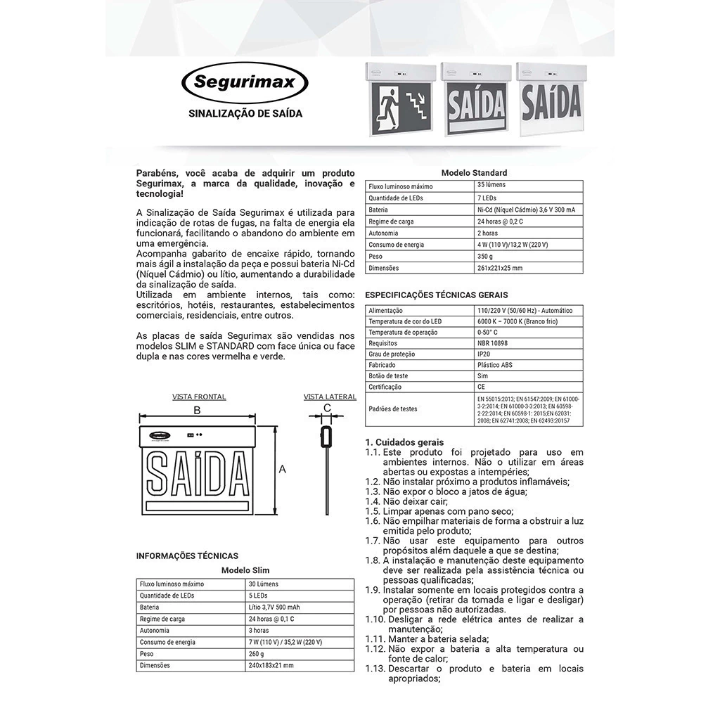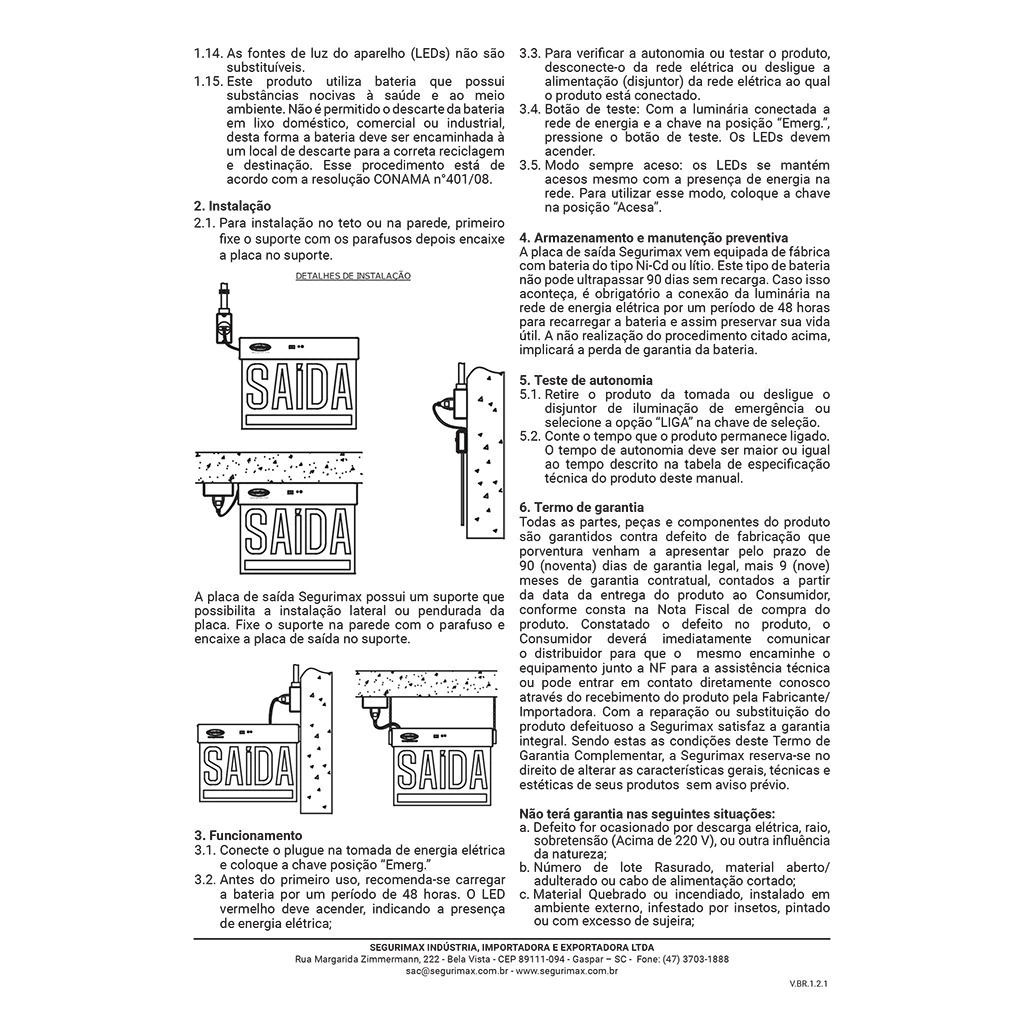 Com esta luminária você tem 2 opções em 1 só produto, pois acompanha um conjunto de adesivos com opções de pictogramas (porta de saída e seta indicativa ou escada e seta indicativa).