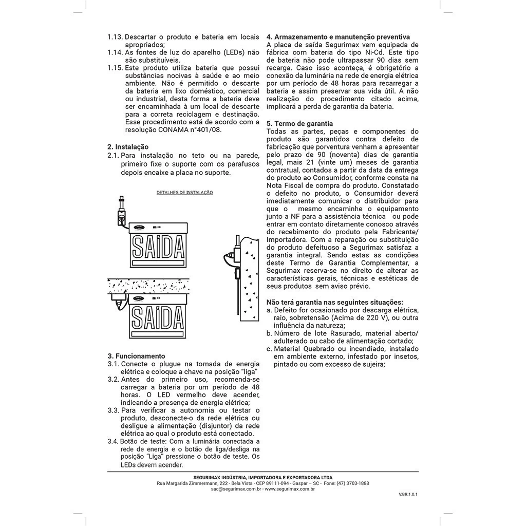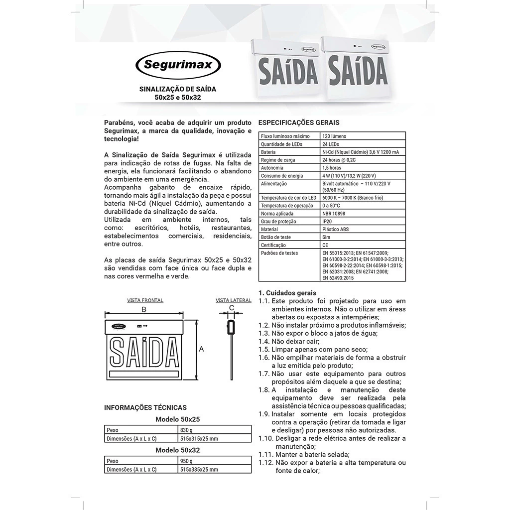 Com essas características, a Sinalização de Saída Segurimax é uma escolha confiável e eficiente para a segurança em emergências.