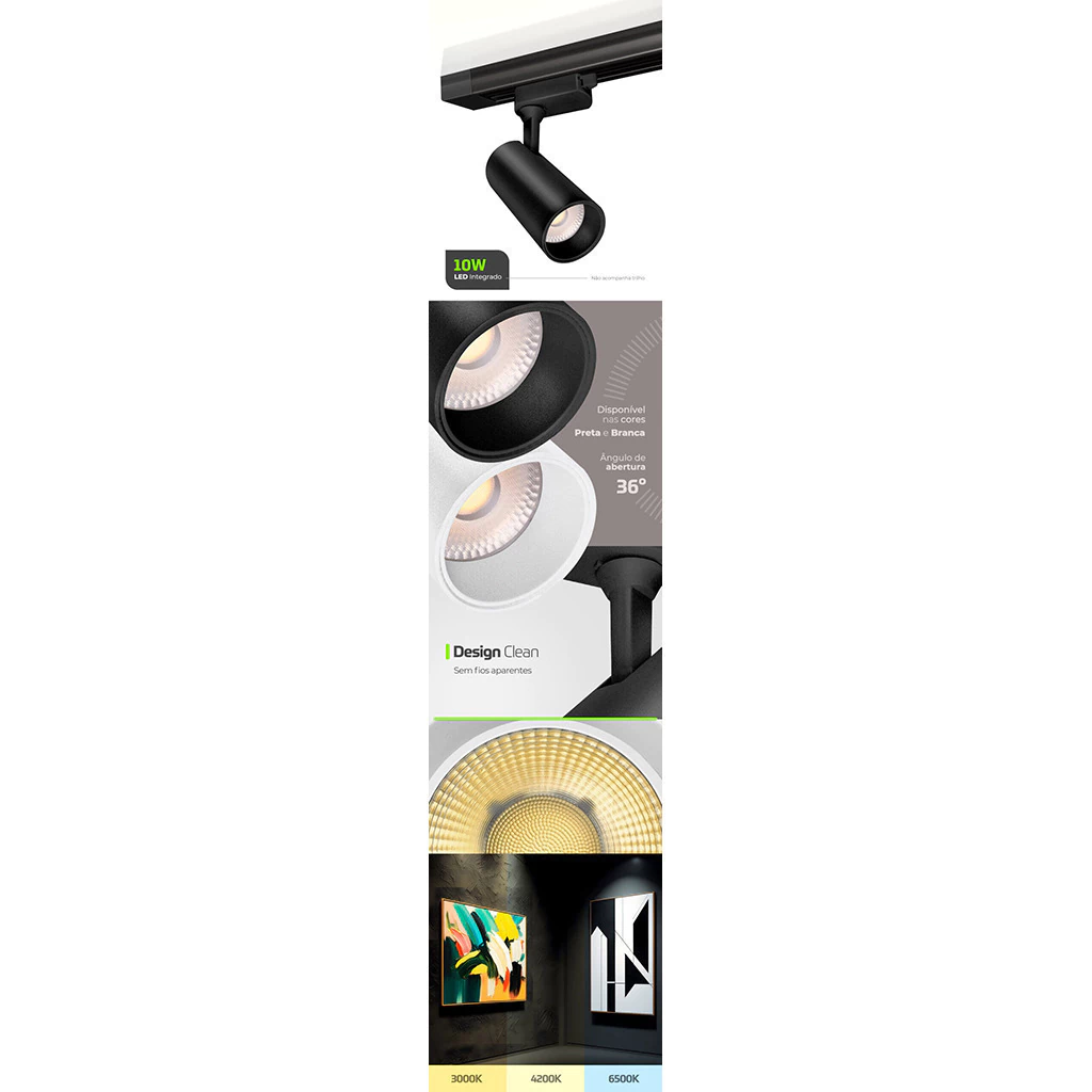 SPOT TUBE TRILHO PRETO LED 10W 4200K AUTOVOLT COD TSTP410 - LUMANTI