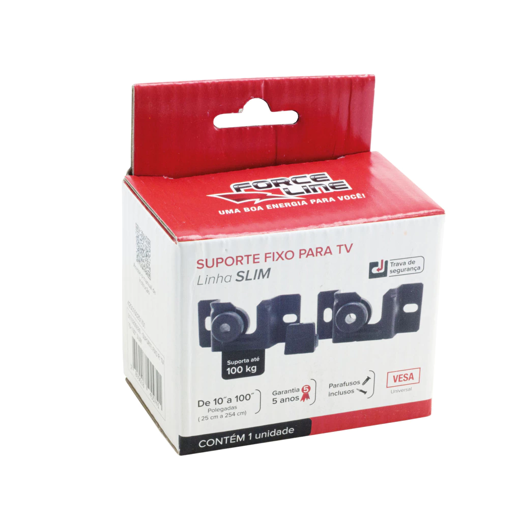 Características Técnicas Tipo Suporte Fixo Universal para TV Polegadas 10" à 100" Categoria Parede Modalidade Fixo Fixação Universal Distância da Parede 3 cm Cor Preto Capacidade Suporta até 100 Kg Material Aço Inclinação - Furação Compatível VESA: Ajustável à todas furações VESA Kit Parafusos (Fixação na Parede) 4 parafusos 6x40mm / 4 buchas S8 Kit Parafusos (Fixação na TV) M6x25mm Nível Bolha Não