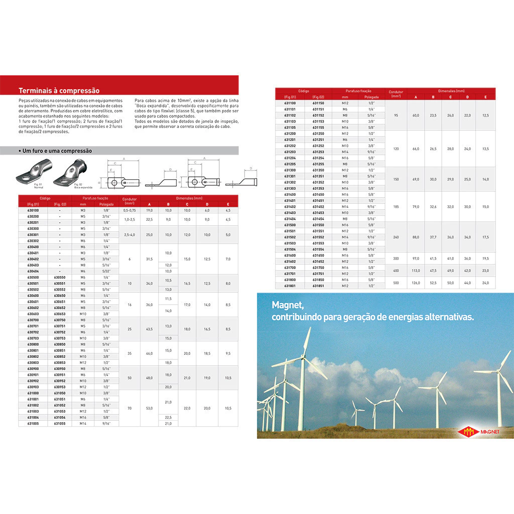 TERMINAL COMPRESSÃO FIXAÇÃO COBRE BOCA EXPANDIDA EST F(M6) 16mm2 COD 630650 - MAGNET