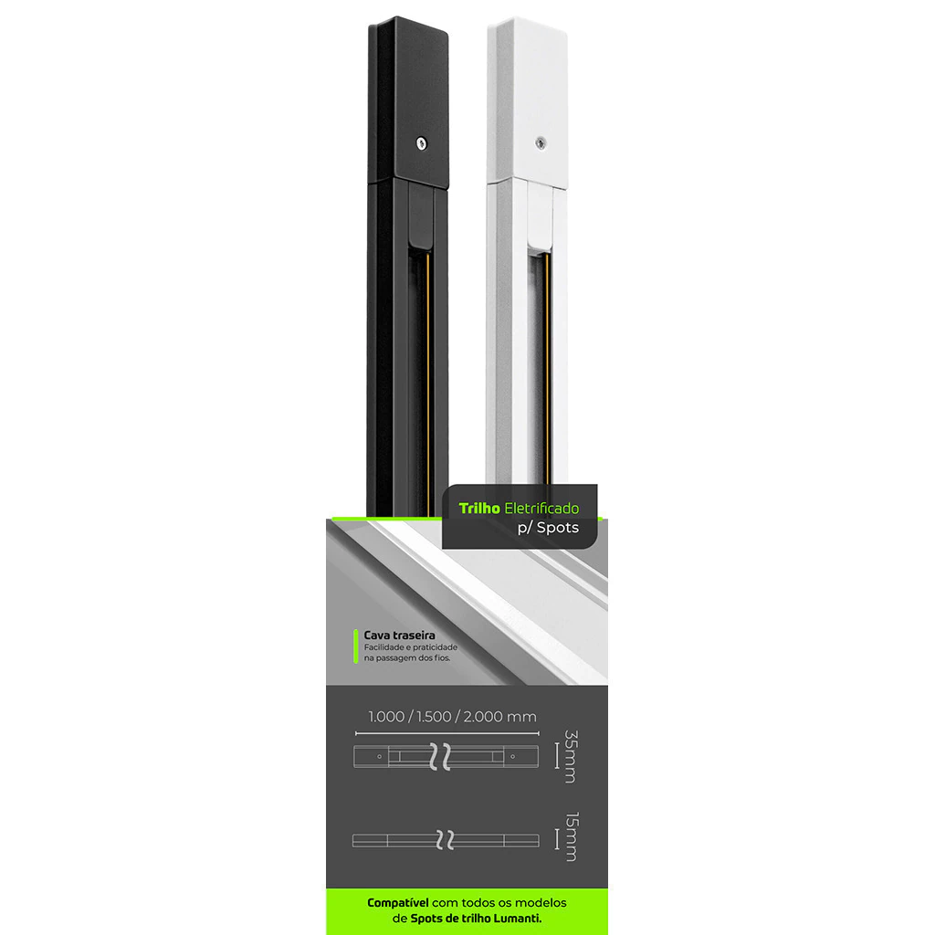 TRILHO SOBREPOR ELETRIFICADO 2 METROS PRETO COM CAVA COD T200P - LUMANTI