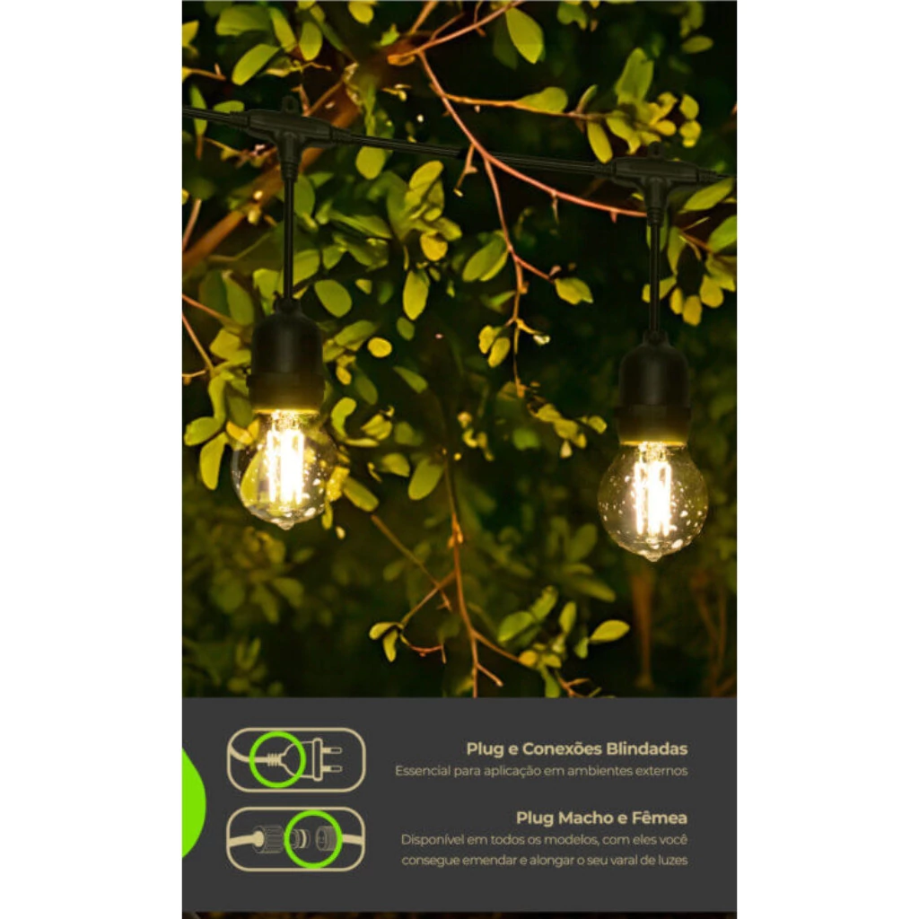 O Varal de Luzes Festão é a escolha ideal para quem busca uma iluminação decorativa de alta qualidade e segurança para jardins, pergolados, e onde mais sua criatividade alcançar.